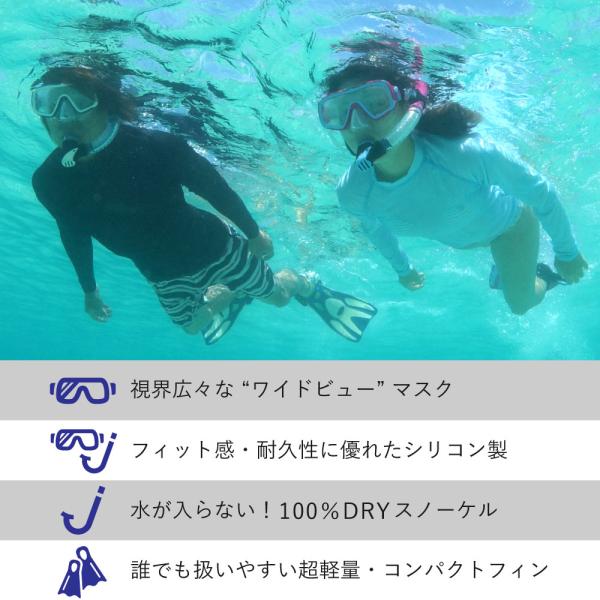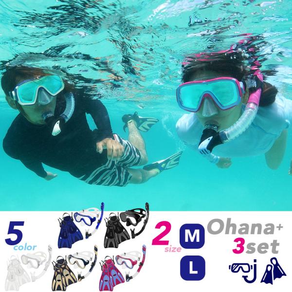 『100%ドライスノーケル』付 シュノーケル セット3点 シュノーケリング セット【ohana+set-hrf0106】