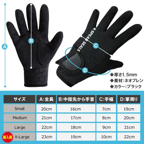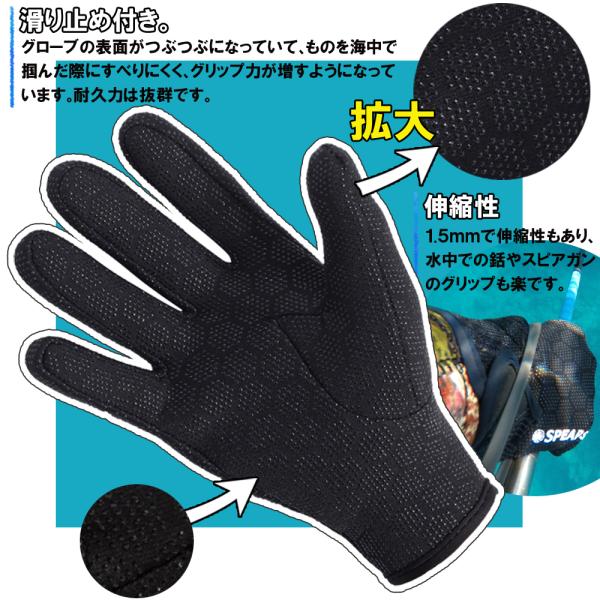 SPEAR SEALS ネオプレーングローブ 1.5mm ダイビング グローブ スピアフィッシング 銛 グリップ ネオプレーン 手袋 魚突き 防水 保温 モリ 手銛 ヤス 道具
