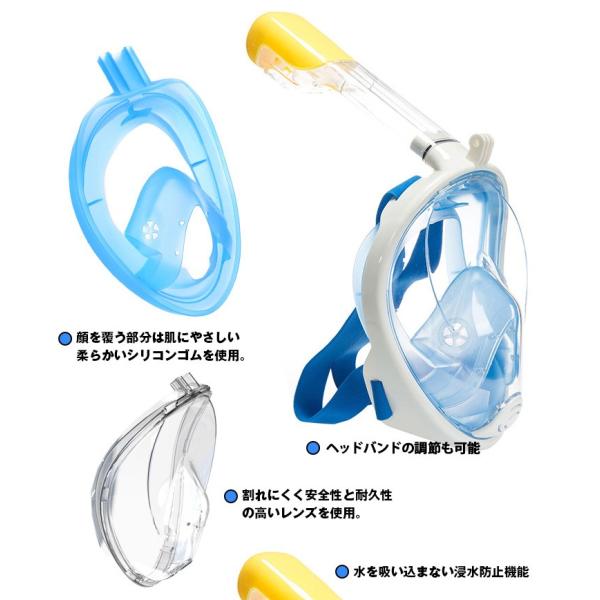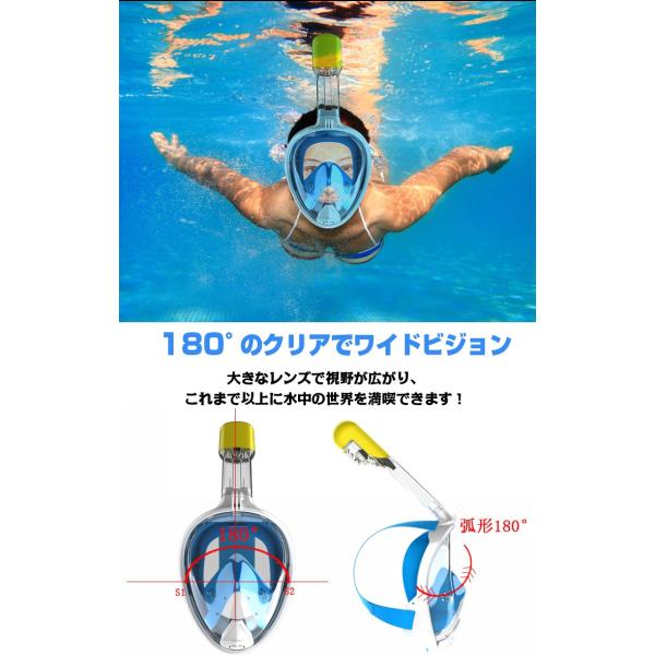 シュノーケル フルフェイス型 180度 曇り止め 水中 マスク シリコン 潜水 水遊び スキューバ 大人用 子供用 水中メガネ ad153