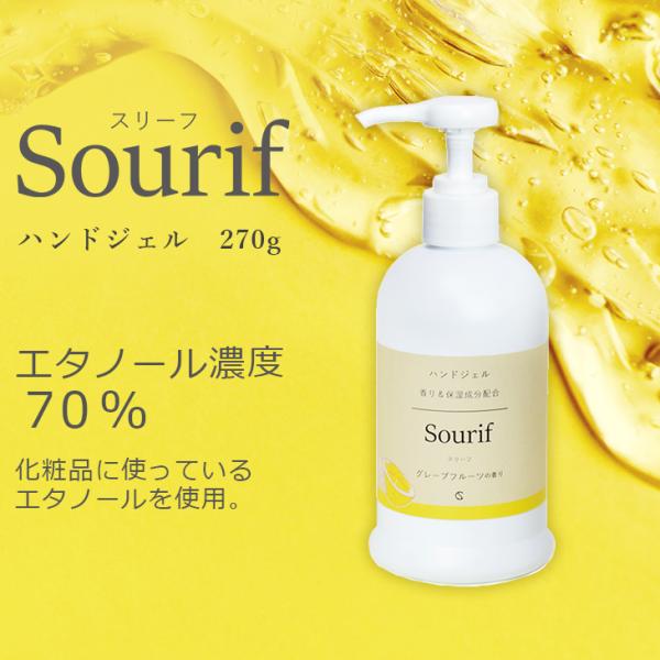 Sourif スリーフ ハンドジェル 270g 保湿 ヒアルロン酸 除菌 アルコール エタノール 70% 日本製 グレープフルーツの香り 置き型 おしゃれ