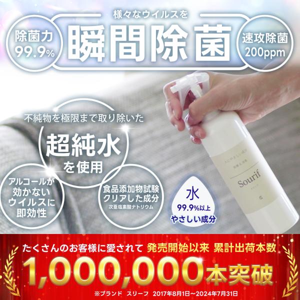 ウイルス 花粉対策 sourif スリーフ 500ml 除菌スプレー 詰め替え 安定型次亜塩素酸ナトリウム 日本製 水の成分99.9%