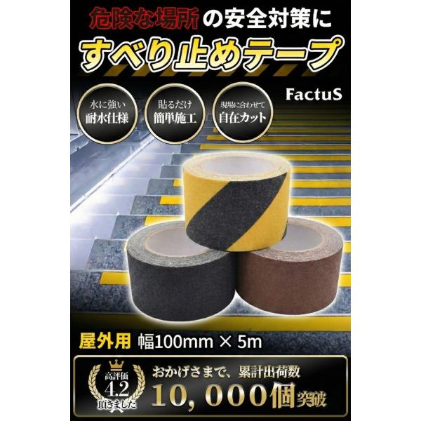 滑り止めテープ 屋外 階段 強力 100mm×5m 屋外用 すべり止め 転倒防止 防水 鉄板 スロープ 幅広 ワイド 業務用 玄関 コンクリート 貼るだけ簡単 Factus
