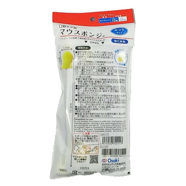オオサキメディカル マウススポンジ ふつうサイズ 紙軸 10本入 個包装 プラスハート 介護 口腔ケア 日本製