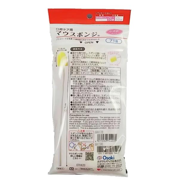 オオサキメディカル マウススポンジ 小さめソフト プラスチック軸 10本入 個包装 プラスハート 介護 口腔ケア 日本製