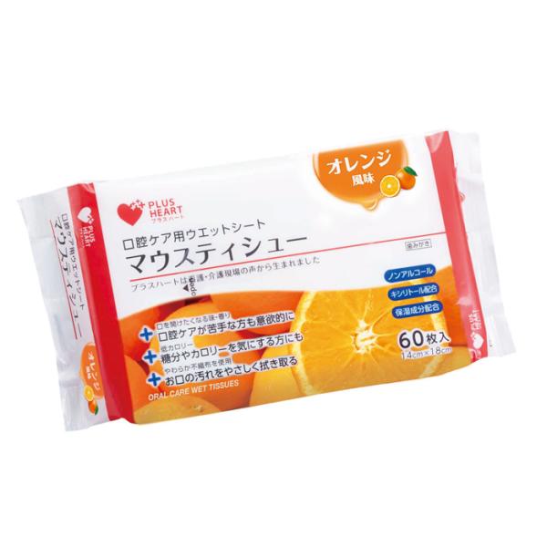 プラスハート マウスティシュー 60枚入(いちご味/オレンジ味) オオサキメディカル 日本製 マウスティッシュ お口ふき