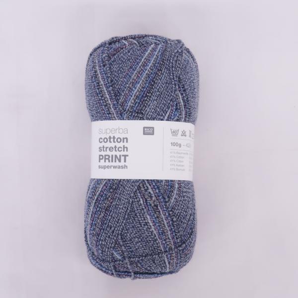 毛糸 RICO DESING リコデザイン superba cotton stretch PRINT superwash ブルー COL.004 ミックスカラー ソックヤーン 未使用品