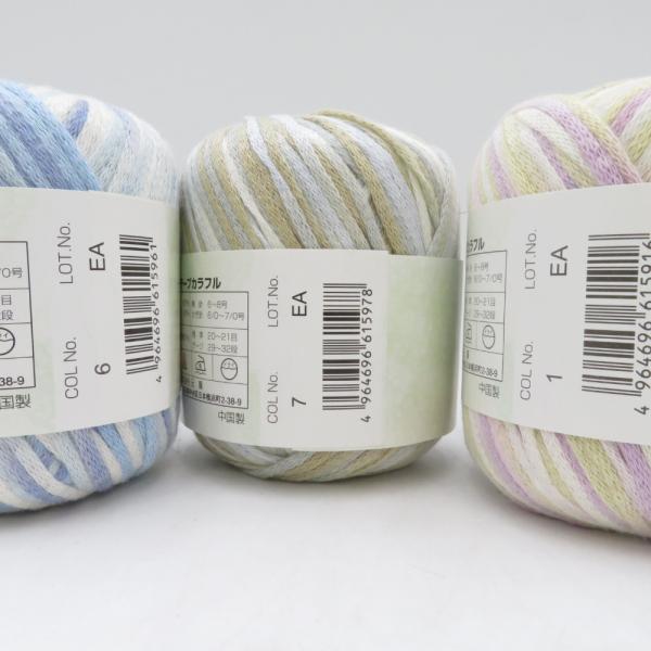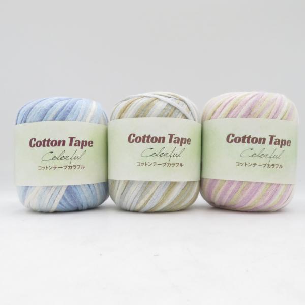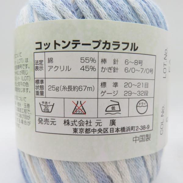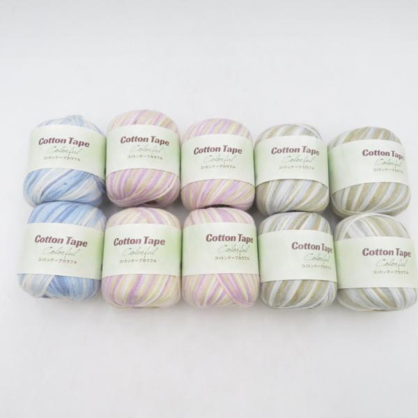 毛糸 コットンテープカラフル 10玉セット 1玉25g巻 約67m 元廣 綿 アクリル 春夏毛糸 テープヤーン 青色 桃色 未使用品