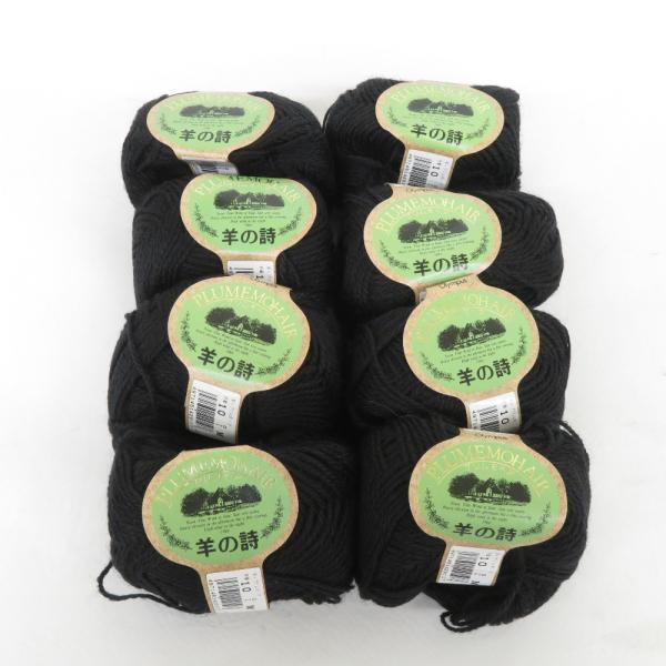 オリムパス製絲 毛糸 羊の詩 プリムモヘア 8玉セット 10番色 黒 標準約40g 約95m 未使用品