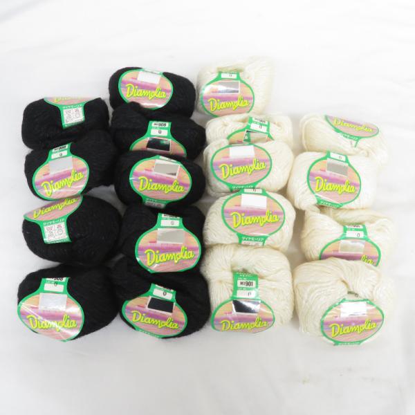 毛糸 ダイヤモーリア Diamolia 18玉セット(MO908番色×9/MO901番色×9) 標準約40g 約64m 黒/白 未使用品