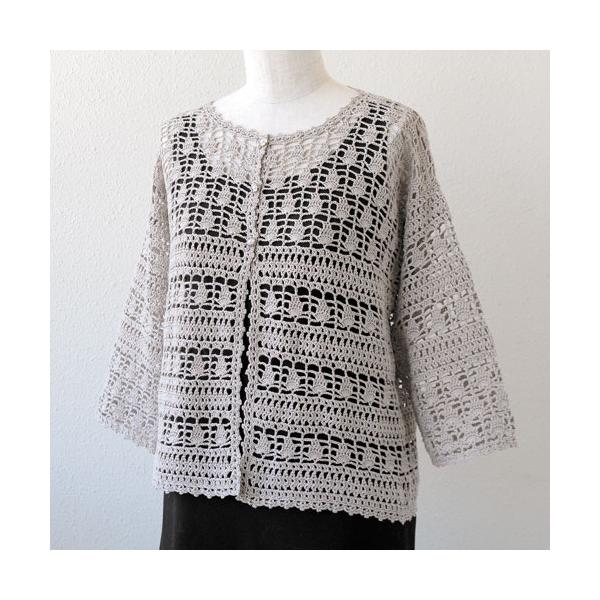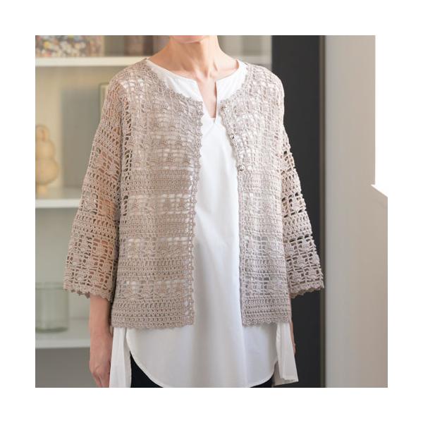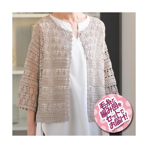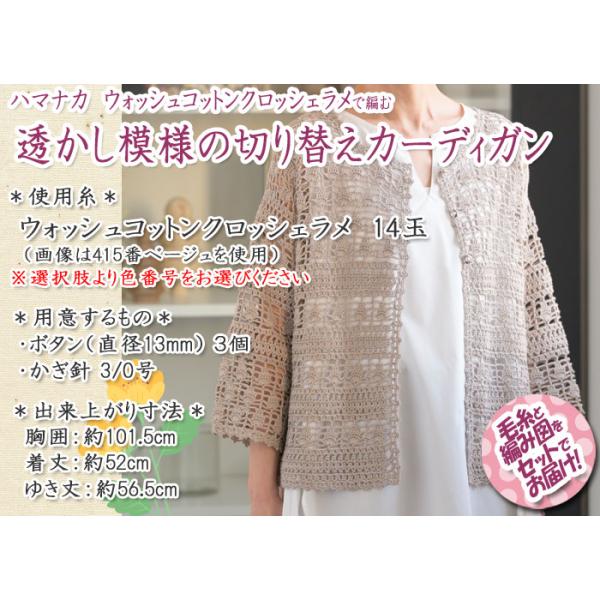 ハマナカ 透かし模様の切り替えカーディガン 着分セット(ウォッシュコットンクロッシェラメ14玉・編図)【着分08番】