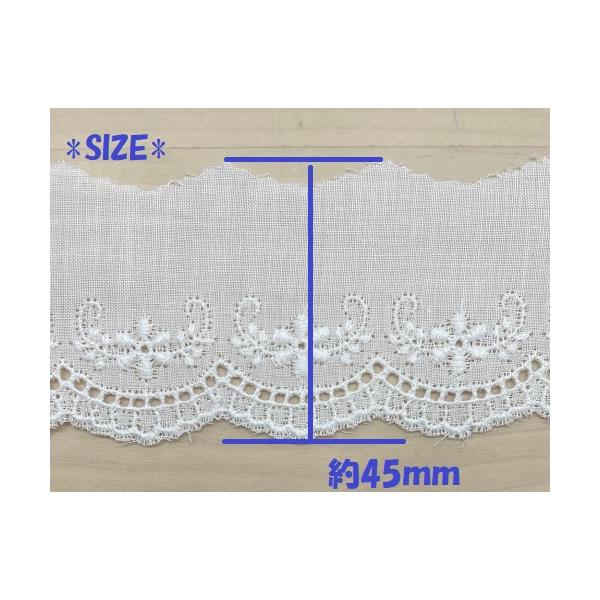 綿レース 日本製 約45mm巾 花柄 オフホワイト No.2461 コットンレース
