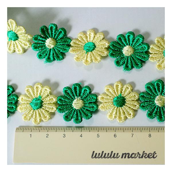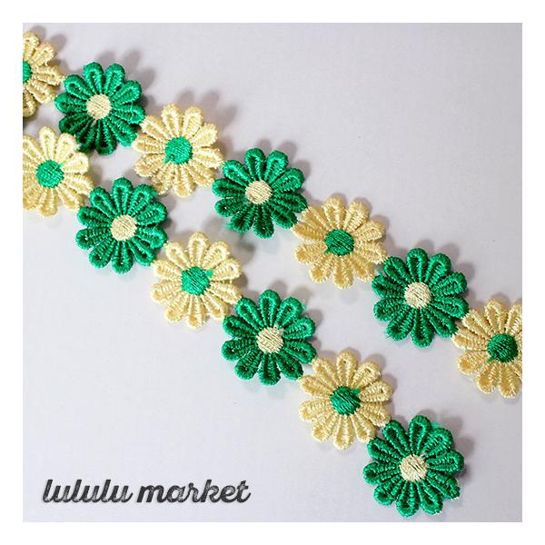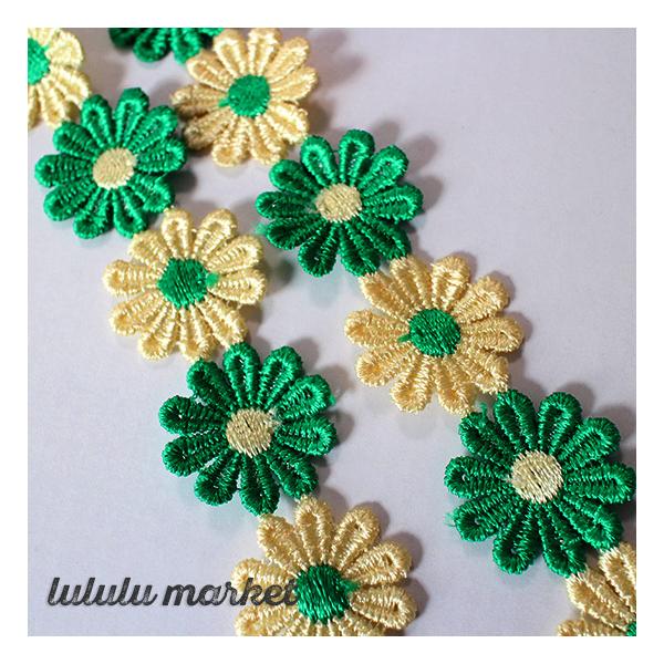 モチーフレース 花 マーガレット 90cm(グリーン×イエロー)ab-216b