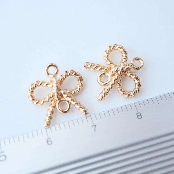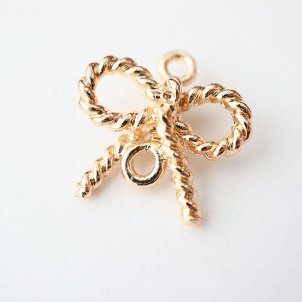 『在庫処分価格』金アレ対応 真鍮製 ねじねじ リボン コネクター チャーム 4個
