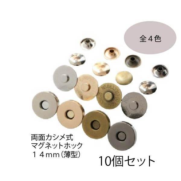 マグネットホック 薄型 両面カシメ式 14mm 両面カシメ マグネットホック マグネットボタン 手芸 ハンドメイド クラフト金具 革 両面 10個セット mh3