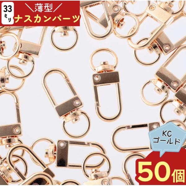 ナスカン ゴールド 50個 33mm 薄型 フック 回転カン付き キーホルダー 金具 ハンドメイド アクセサリー パーツ AP2142
