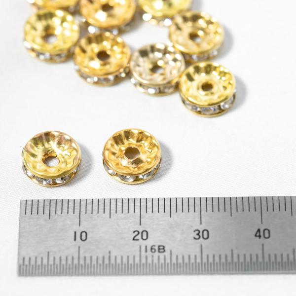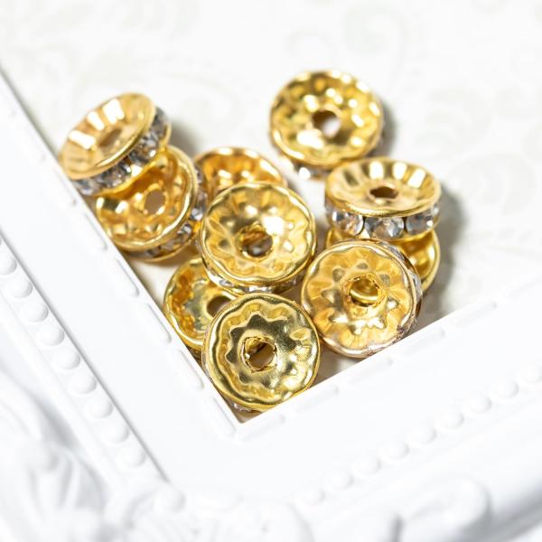 ロンデル 10mm 10個 平型 スペーサー ゴールド 金 ストーン色 クリア 天然石 アクセサリー ブレスレットパーツ ビジュー キラキラ