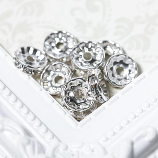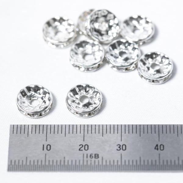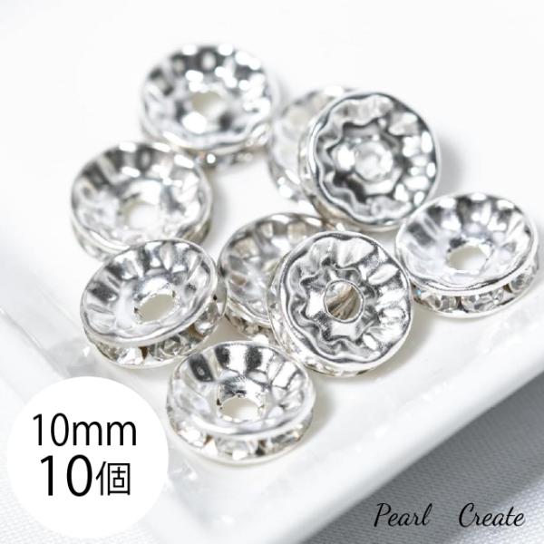 ロンデル 10mm 10個 平型 スペーサー シルバー 銀 ストーン色 クリア 天然石 アクセサリー ブレスレットパーツ ビジュー キラキラ