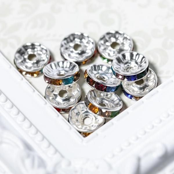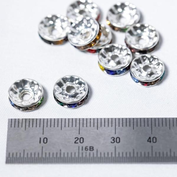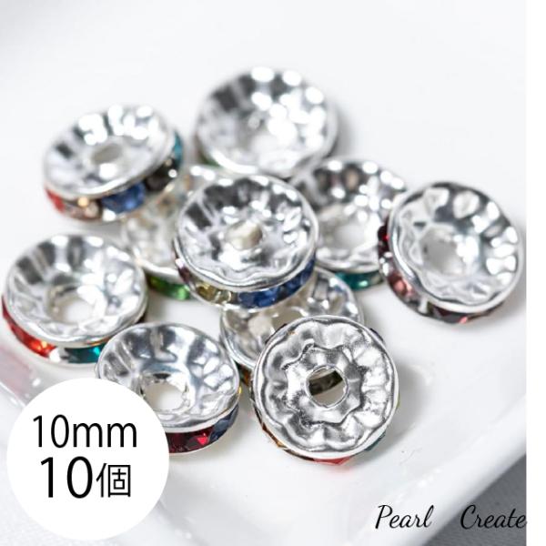 ロンデル 10mm 10個 平型 スペーサー シルバー 銀 ストーン色 カラフル マルチカラー 天然石 アクセサリー ブレスレットパーツ ビジュー キラキラ