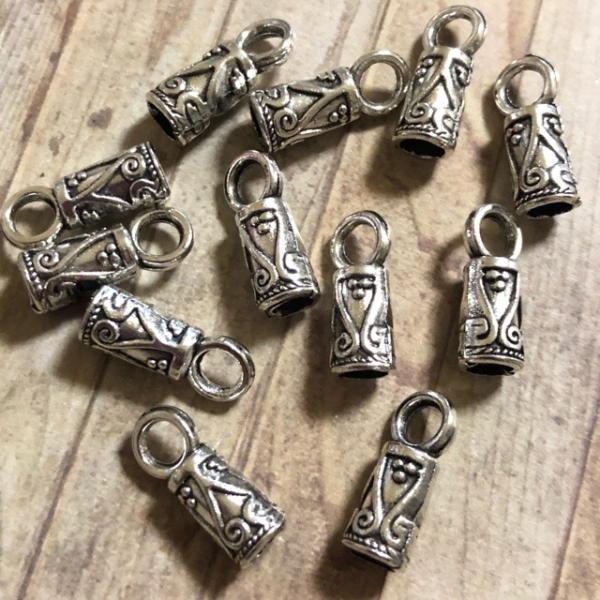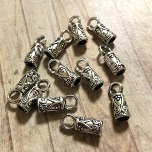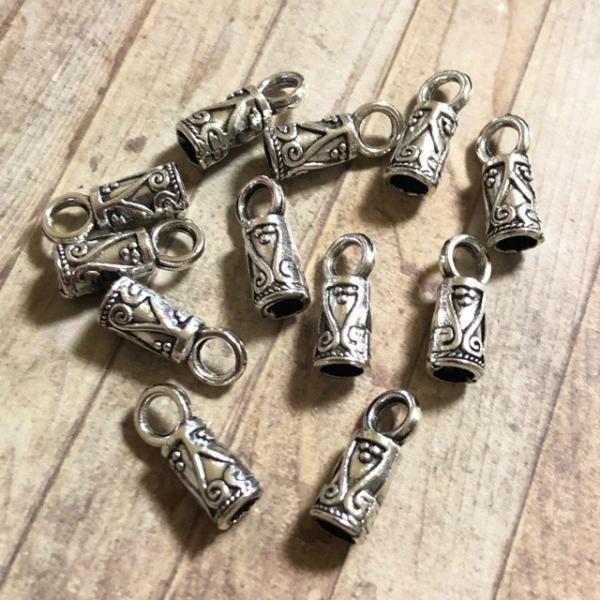 10個 コードエンドキャップ ビーズ シルバー