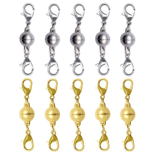 マグネット留め具10個セット シリンドリカル 磁気クラスプ ネックレス 留め具 エンドパーツ アクセサリーパーツ 延長用金具 DIY用 クラフト作り 簡単装着