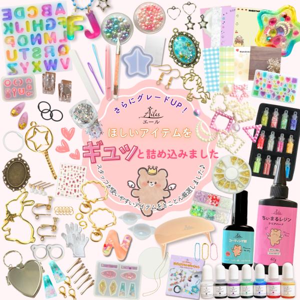 レジンセット UVレジン セット プレゼント シェイカー アクセサリー 誕生日 こだわり アイテムセット 110点以上 シャカシャカレジンも作れる Ailes エール