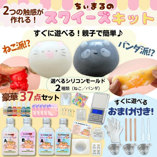 【スクイーズ キット】【送料無料】豪華37点セット ちぃまるスクイーズ ぷにぷに液 2種類 2液性 肉球 ほっぺた スクイーズ レジン キット 説明書付 Ailesエール