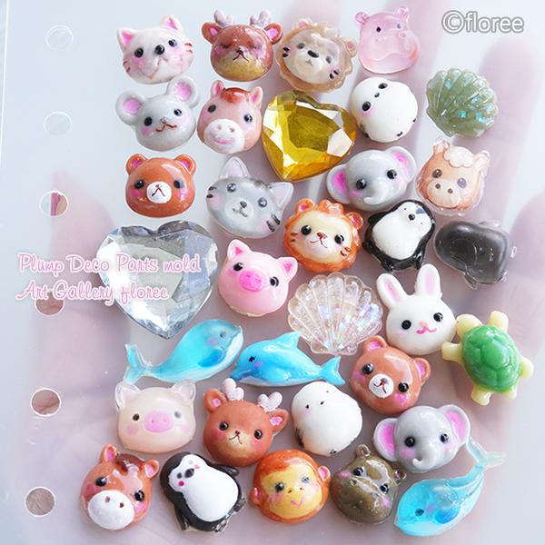 アニマルキャラB(ゾウほか)ぷっくりデコパーツモールド 【平面型】ぷっくりシール風パーツが作れる シリコンモールド レジン 樹脂粘土 推し活 フローレ