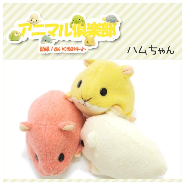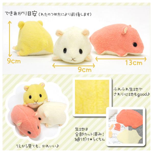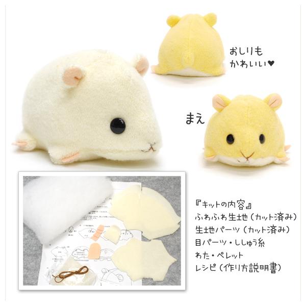 【手芸キット】動物ぬいぐるみ:アニマル倶楽部 ハムスター きいろ 夏休み子供手芸に人気 作り方説明書付 生地は型抜き済み 綿・ペレット付他