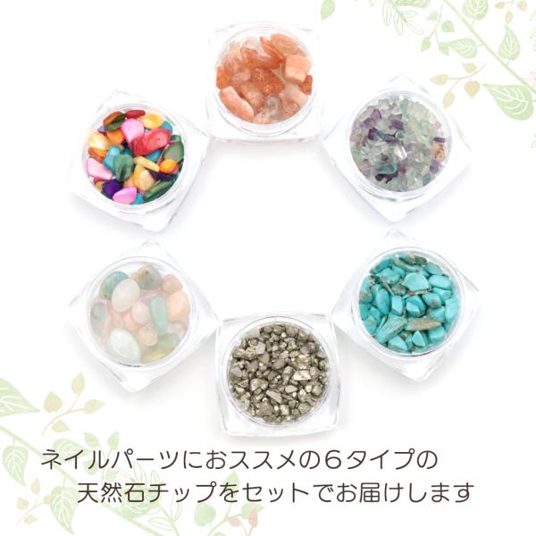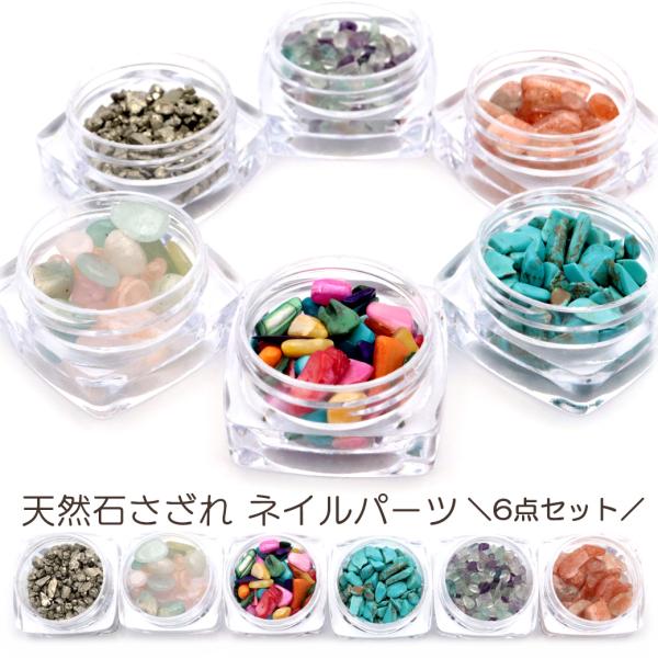 ネイルパーツ 天然石 チップ さざれ ジェルネイル レジン 6点セット 5g シェル ベリル パイライト ターコイズ フローライト サンストーン 爆買