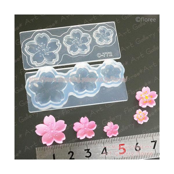 フラワー立体型さくら花芯彫り付き シリコンモールド ミニチュア用 クレイ 桜型 シリコーン型 粘土型 UVレジン 樹脂粘土 フローレ floree