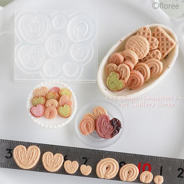 Miniature sweets 小さいハートパイ& 小さいクッキーC両面型 シリコンモールド ミニチュアクッキー型 粘土型 樹脂粘土 アートギャラリーフローレ floree
