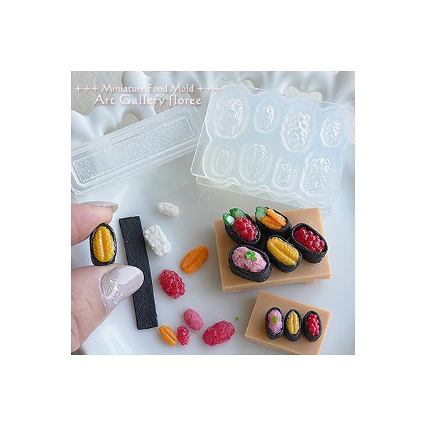 Miniature food 軍艦巻き立体型(イクラ・ウニ・ネギトロ)シリコンモールド ミニチュア用お寿司型 シリコーン型 粘土型 樹脂粘土 フローレ floree