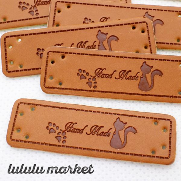 革タグ 15枚(猫と肉球/HANDMADE)ab-336c