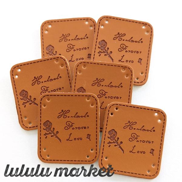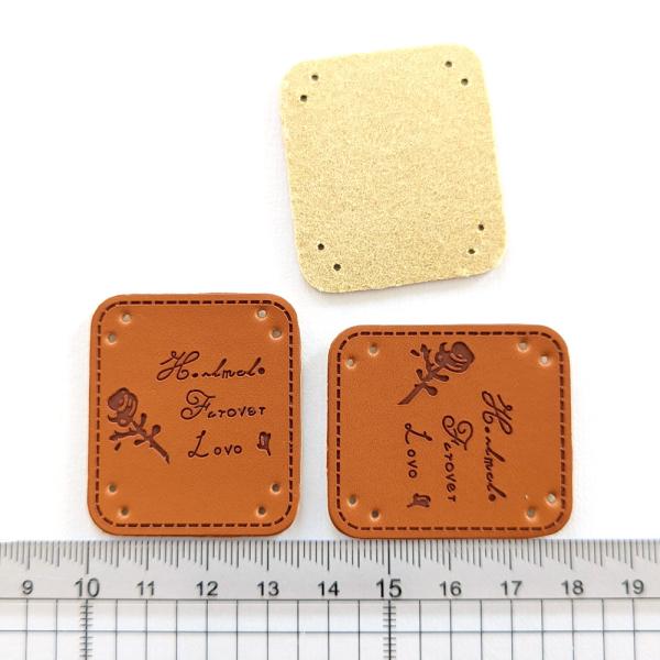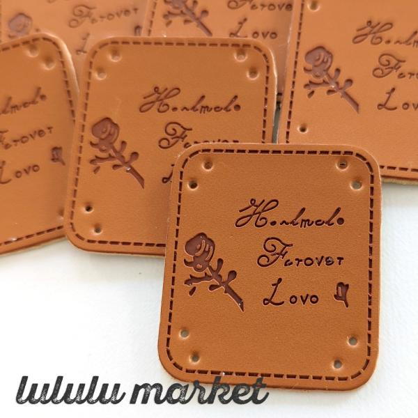 革タグ 3枚(一輪のバラ/HANDMADE)ab-430b