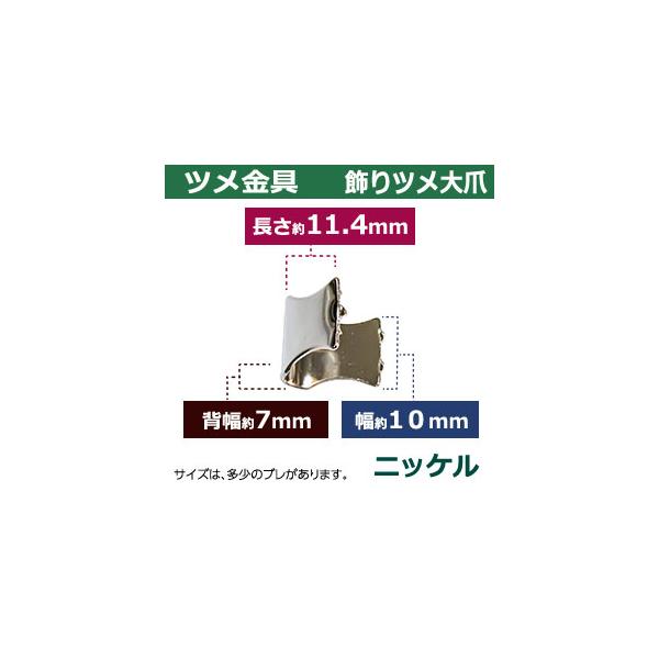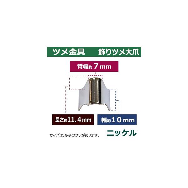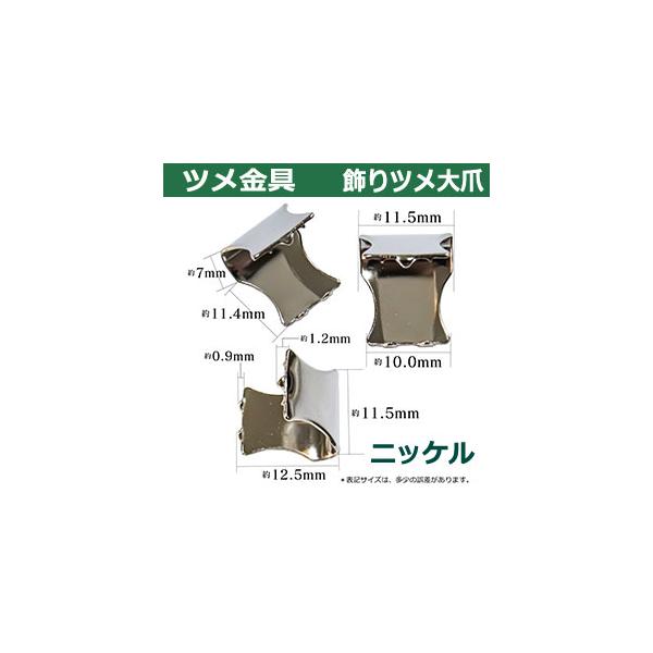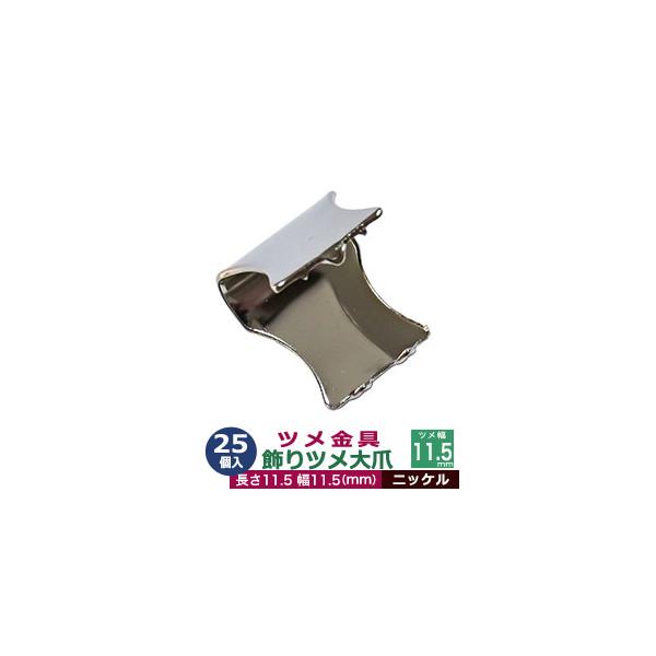 ツメ金具 飾りツメ大爪 11.5mm シルバー 25個1袋 幅11.5mm 長さ11.5mm 背幅7mm ニッケルメッキ 鉄
