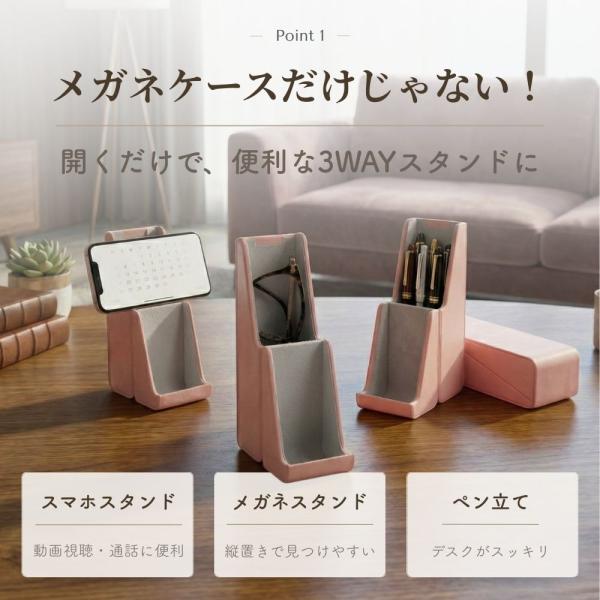 メガネケース おしゃれ ハード コンパクト スリム 収納 便利 メガネスタンド ペンケース スマホスタンド 眼鏡ケース 多機能 プレゼント ペン立て 眼鏡入れ