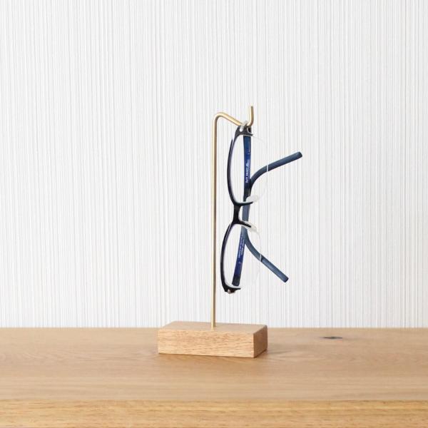 メガネスタンド 木製 オーク×真鍮 1本掛け 無垢材 おしゃれ 北欧風 高級感 ギフトにも