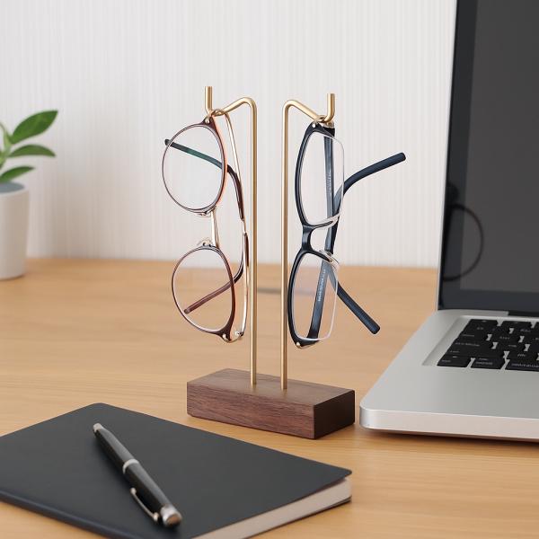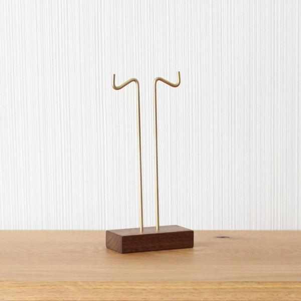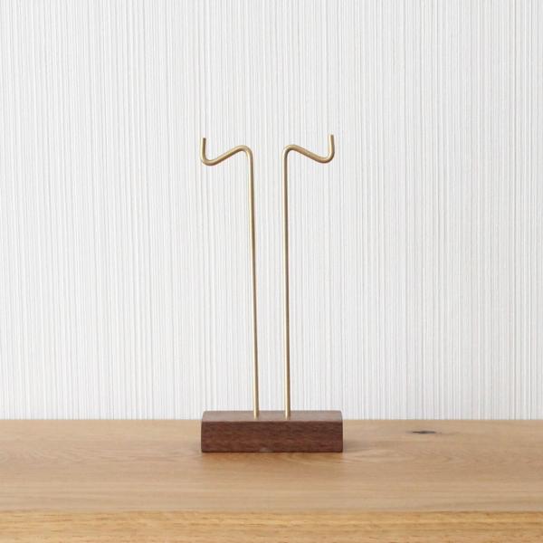 メガネスタンド 木製 ウォールナット×真鍮 2本掛け 無垢材 おしゃれ 北欧風 高級感 ギフトにも