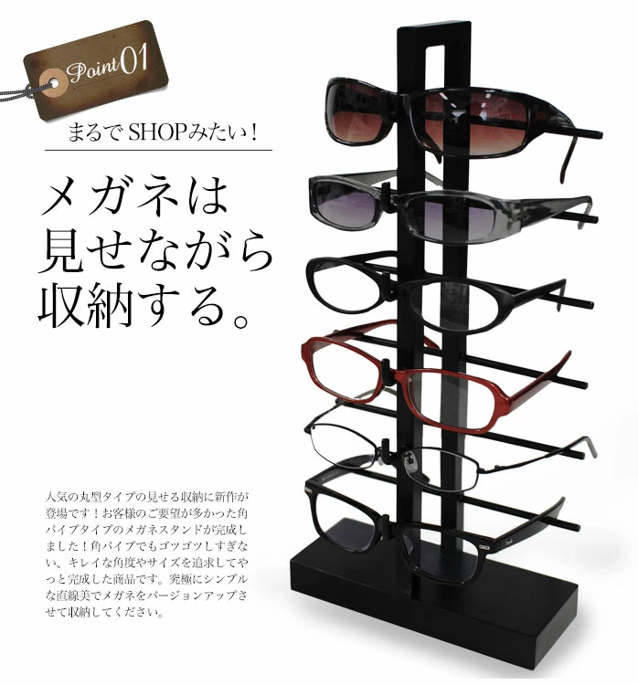 【 6個掛けタワー型キューブメガネスタンド 】アイアン メガネスタンド 6個掛け 眼鏡置き 白 黒 めがね置き おしゃれ ディスプレイ 6本 収納 メガネ立て 日本製