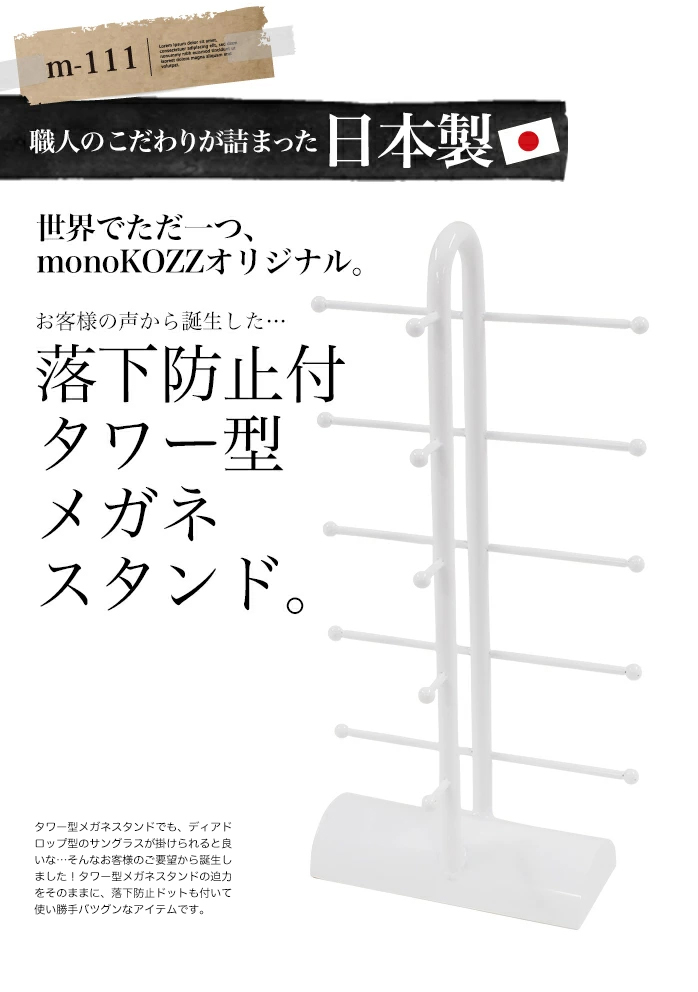 【 5個掛けタワー型メガネスタンド ドット付 】アイアン メガネスタンド 5個掛け 白 黒 サングラス置き おしゃれ ディスプレイ 収納 5本 サングラス掛け 日本製
