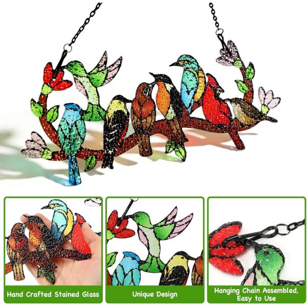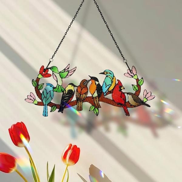 枝に止まる鳥ステンドグラス カーディナル ハチドリ カワセミ両面ガラスパネル窓吊り下げ装飾鳥好き贈り物輸入品