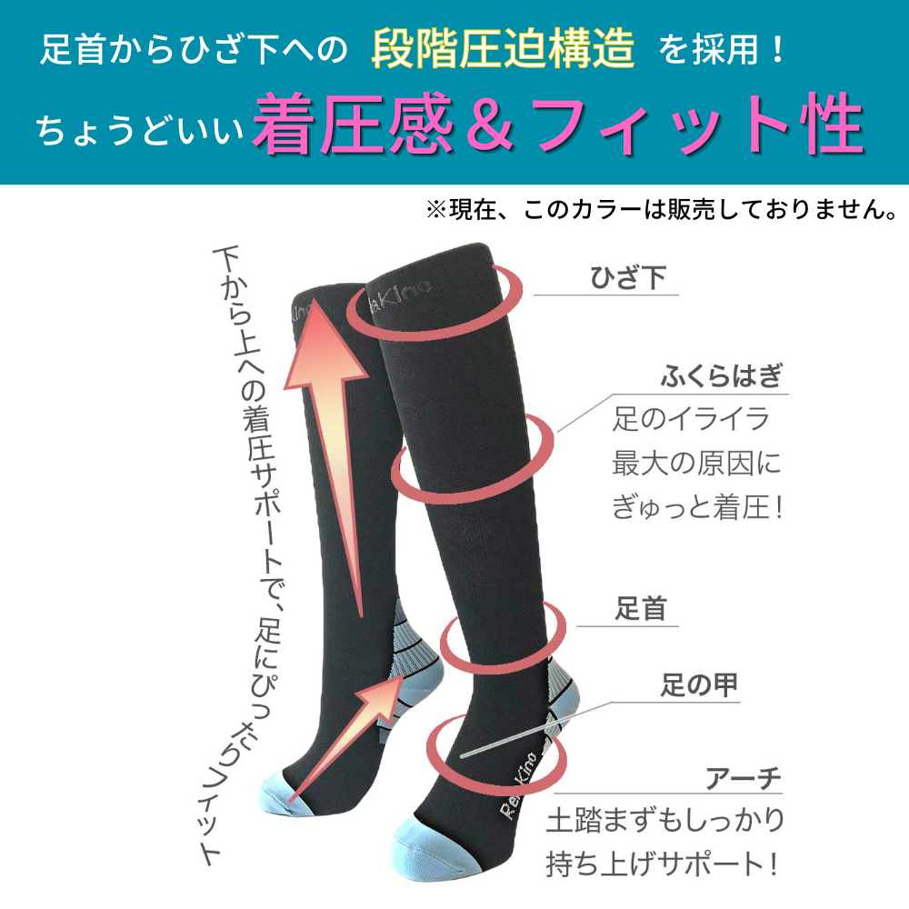 着圧ソックス 2足セット メンズ レディース ハイソックス ゴルフ スポーツ 疲労 むくみ 脚痩せ 靴下 着圧 ソックス ランニング ふくらはぎ Rela Kino公式