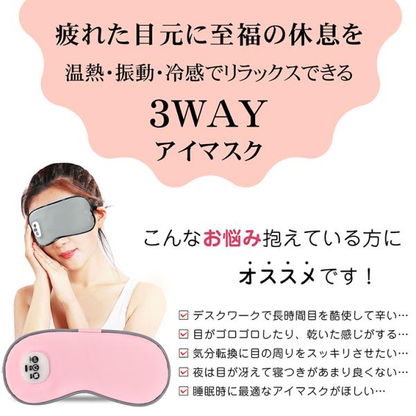 アイマスク ホットアイマスク ホット 充電式 睡眠 usb 家電 おもしろ アイピロー 健康 マッサージ 冷却 温アイマスク 目の疲れ 目 アイケア リラックス 目元