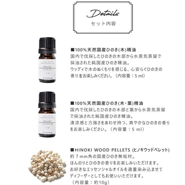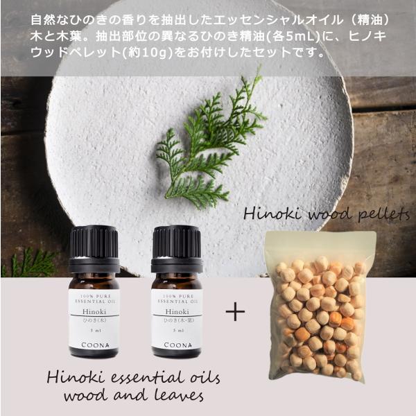 ひのき アロマ セット 木と木葉 5mL×2本 ヒノキ 精油 ヒノキの香り ヒノキウッド付