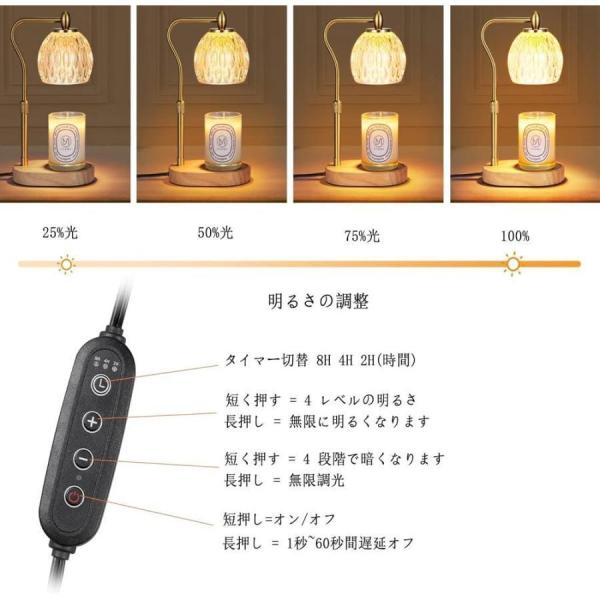 キャンドルウォーマー ランプ 高さ調節 調光 卓上 タイマー付き 電球 アロマキャンドル アロマランプ アロマウォーマー 間接照明 母の日 プレゼント ギフト