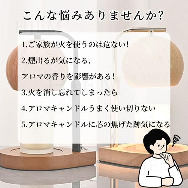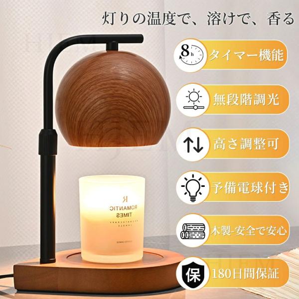 キャンドルウォーマー キャンドルランプ タイマー付き アロマキャンドル ランプ 間接照明 調光 明るさ調節 高さ調節 照明 電球付き タイマー式 木目 木製