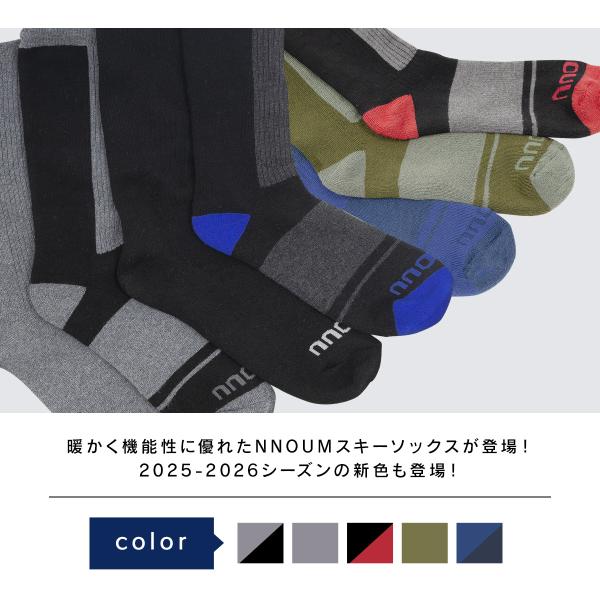 スキー スノーボート ソックス メンズ 靴下 防寒 NNOUM ノアム 25-28 クッション性 おしゃれ 選べるカラバリ ハイソックス