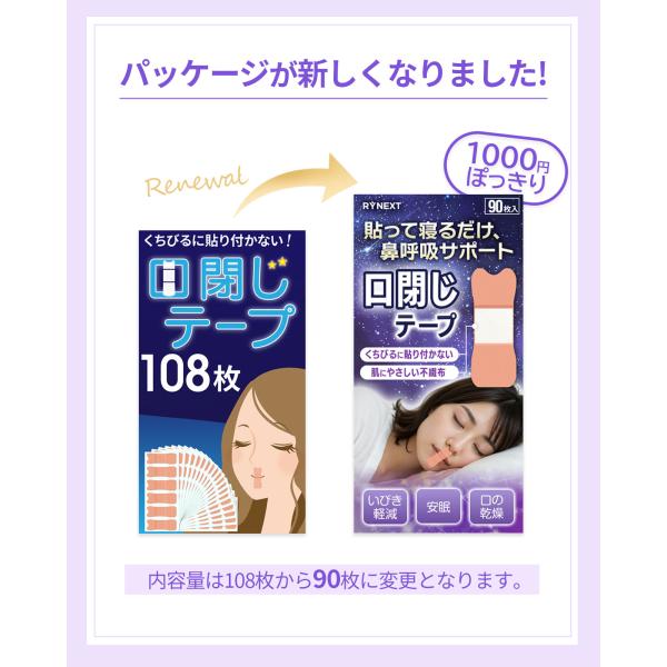 口閉じテープ 鼻呼吸テープ 大容量 90枚2個セット 睡眠サポート いびき軽減 口の乾燥対策に 幅広 マウステープ 口呼吸対策グッズ RYNEXT