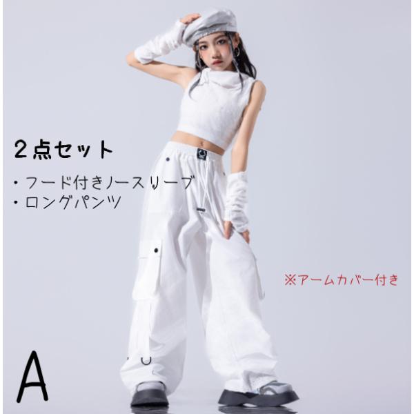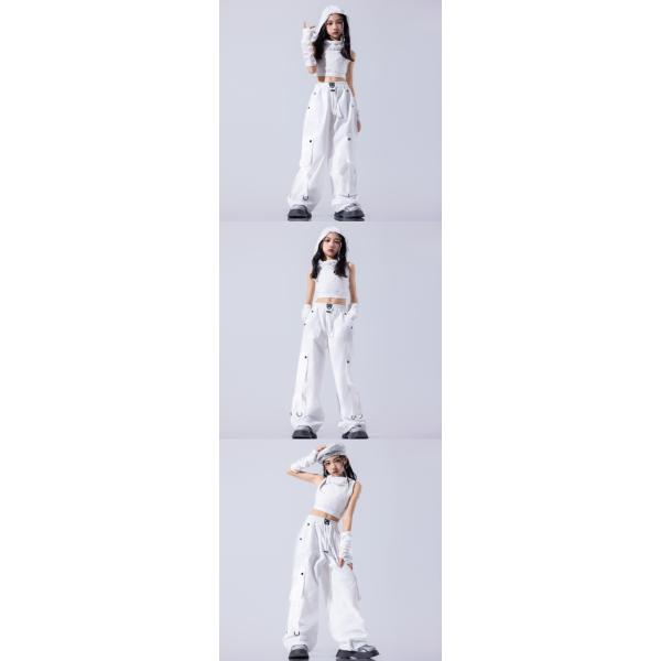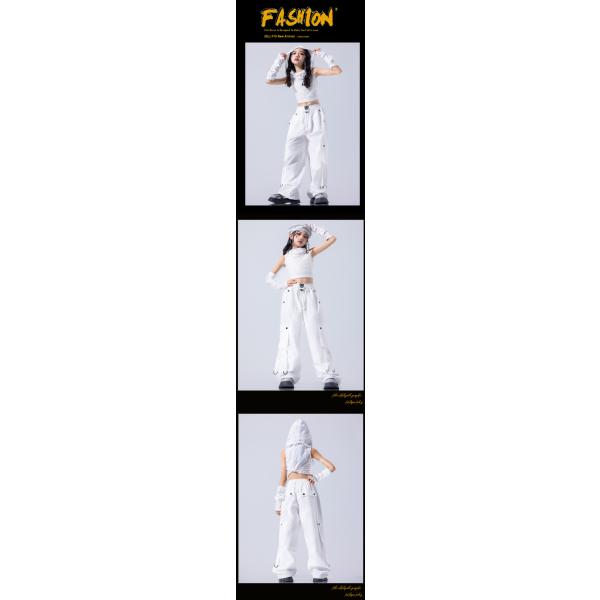 白 ホワイト フード付 キッズ ダンス衣装 ヒップホップ ジャズ 女の子 ジャズダンス セットアップ チア 子供服トップス スカート パンツ k-pop 衣装 jazz団体