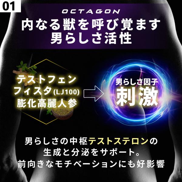 【公式】オクタゴン OCTAGON メンズブースター テストフェン PHYSTA アストラジン 膨化紅参 シトルリン 亜鉛酵母10% 特許成分6種類配合サプリ 約30日分 (1袋)